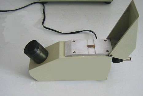 用來測寶石的比重,不同的寶石有不同的密度,比如紅寶石和藍寶石的比重為4左右,翡翠為3.34,軟玉為2.95,有時只測量寶玉石的比重就對鑒定寶玉石非常有效,但是因為體積較大,不可能隨身攜帶,所以具有局限性。