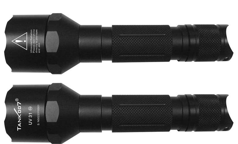 1) 筒身打TANK007 LOGO、S/N號以及型號(UV31) 2) 頭部貼365-5W黃色警示標貼